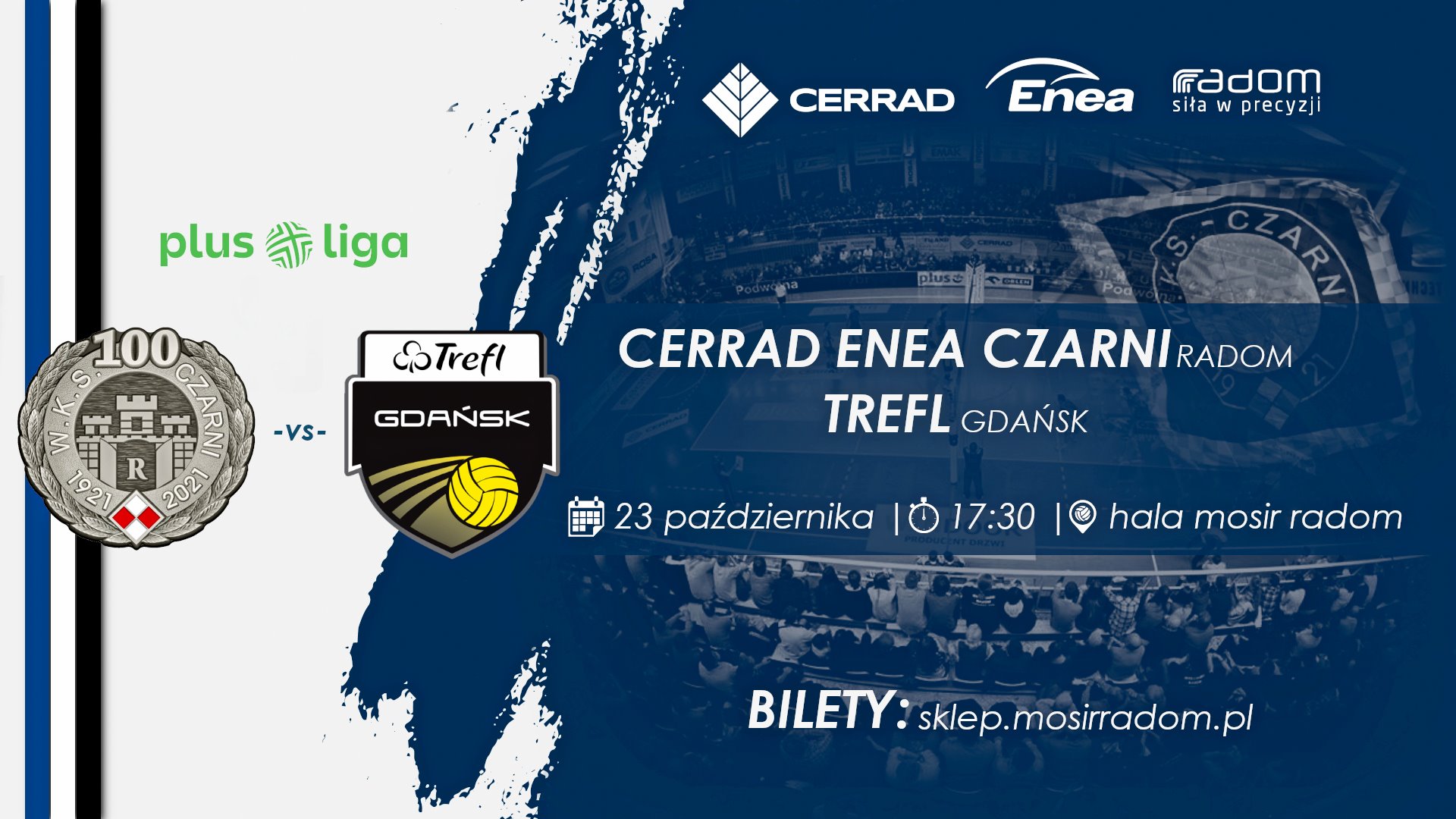 Mecz Cerrad Enea Czarni Radom - Trefl Gdańsk, rozegrane zostanie w sobotę (23 października) o godzinie 17:30 w hali MOSiR w Radomiu, przy ul. Narutowicza 9. Spotkanie transmitowane będzie przez telewizję Polsat Sport. Bilety na mecz dostępne są do nabycia na stronie www.sklep.mosirradom.pl