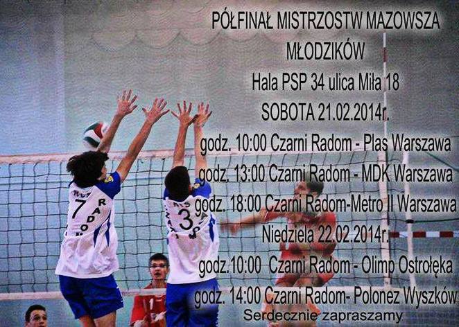 Już w najbliższy weekend (21-22 luty) młodzicy RCS Czarnych Radom przystąpią do walki w półfinale Mistrzostw Mazowsza. Podopieczni Krzysztofa Jaskulskiego będą gospodarzami dwudniowego turnieju, a areną zmagań będzie hala sportowa w Publicznej Szkole Podstawowej nr 34. Rywalami Czarnych będą trzy drużyny z Warszawy, a także Ostrołęki i Wyszkowa.