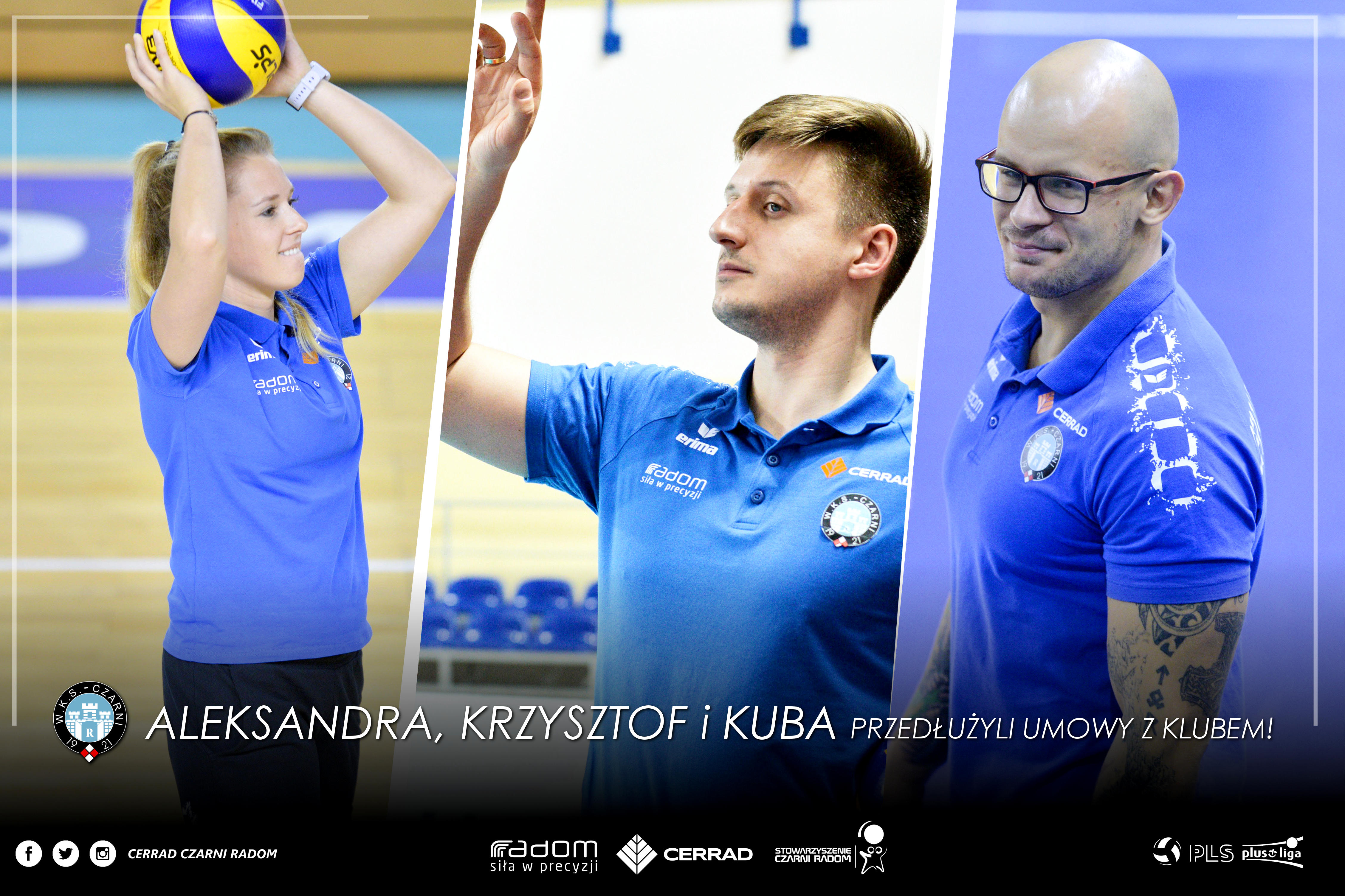 Radomski klub przedłużył kolejne kontrakty! Z drużyną Cerrad Czarnych Radom na kolejne 2 lata związali się członkowie sztabu trenerskiego: fizjoterapeutka Aleksandra Skalska, trener przygotowania motorycznego Kuba Szyszka oraz statystyk Krzysztof Michalski!