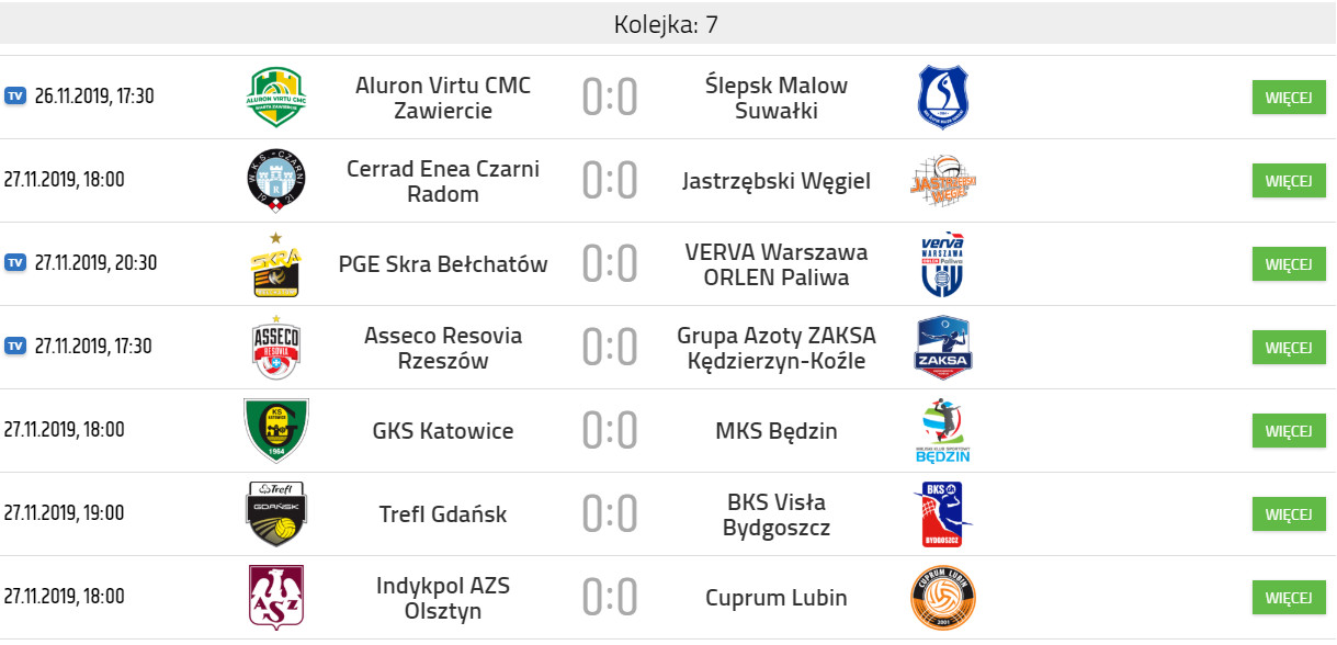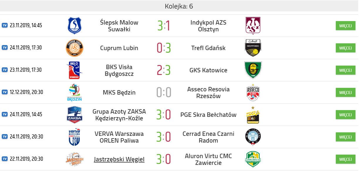 Poniżej prezentujemy wyniki 6.kolejki PlusLigi oraz zestaw gier 7.kolejki: