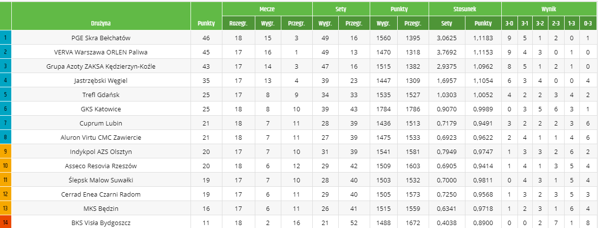 Poniżej prezentujemy aktualną tabelę PlusLigi: