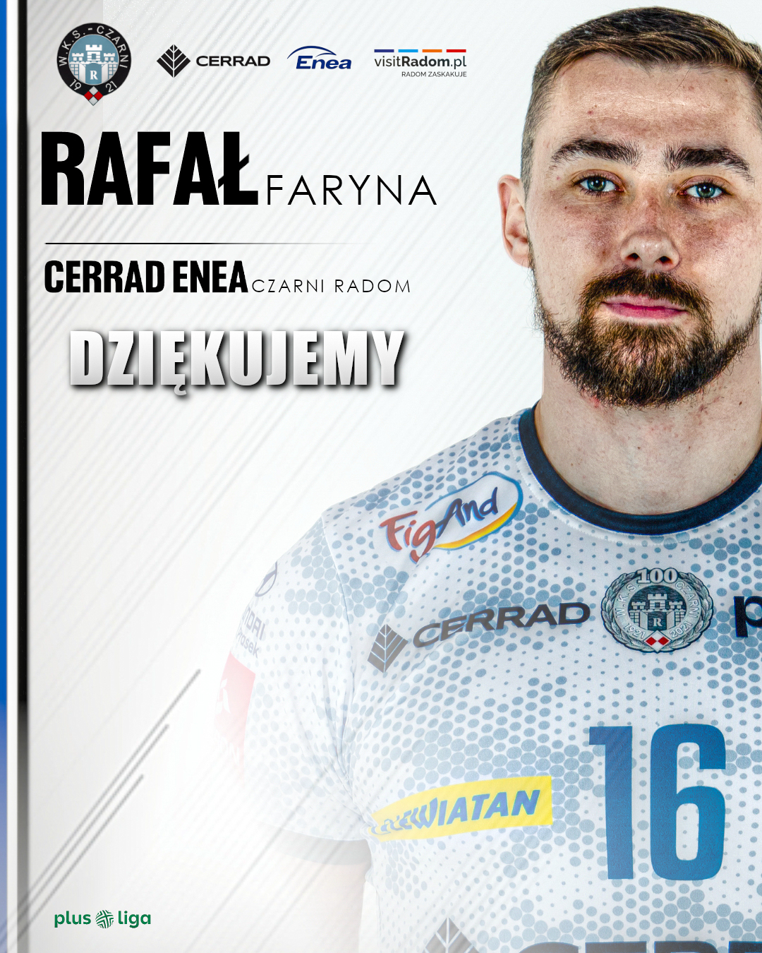 Po roku gry w barwach Cerrad Enea Czarnych Radom, 28-letni atakujący Rafał Faryna odpuszcza klub Wojskowych. Dziękujemy Ci Rafał za reprezentowanie barw WKS-u! Życzymy powodzenia w dalszej sportowej karierze!
