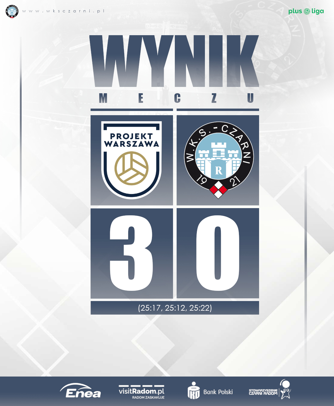 W środę (24 stycznia) siatkarze Enea Czarnych Radom w ramach 18. kolejki PlusLigi mężczyzn, pojechali do stolicy Polski, gdzie zmierzyli się z miejscowym Projektem Warszawa. Podopieczni Waldo Kantora nie zdołali skutecznie przeciwstawić się wyżej notowanemu przeciwnikowi, przegrywając w Arenie Ursynów 3:0. MVP meczu wybrany został rozgrywający gospodarzy, Jan Firlej.