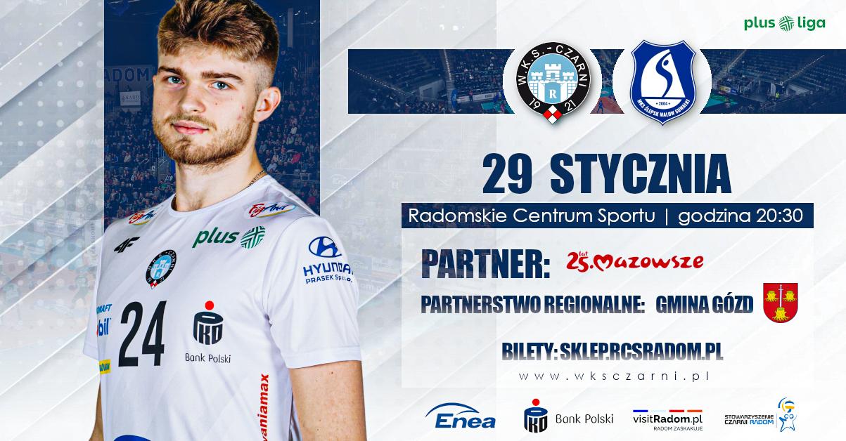 Mecz Enea Czarni Radom - Ślepsk Malow Suwałki, rozegrany zostanie 29 stycznia (poniedziałek) o godzinie 20:30 w hali sportowej Radomskiego Centrum Sportu, przy ul. Struga 63. Bilety na zbliżający się pojedynek dostępne są do nabycia na stronie sklep.rcsradom.pl oraz w dniu meczu w kasach hali RCS.