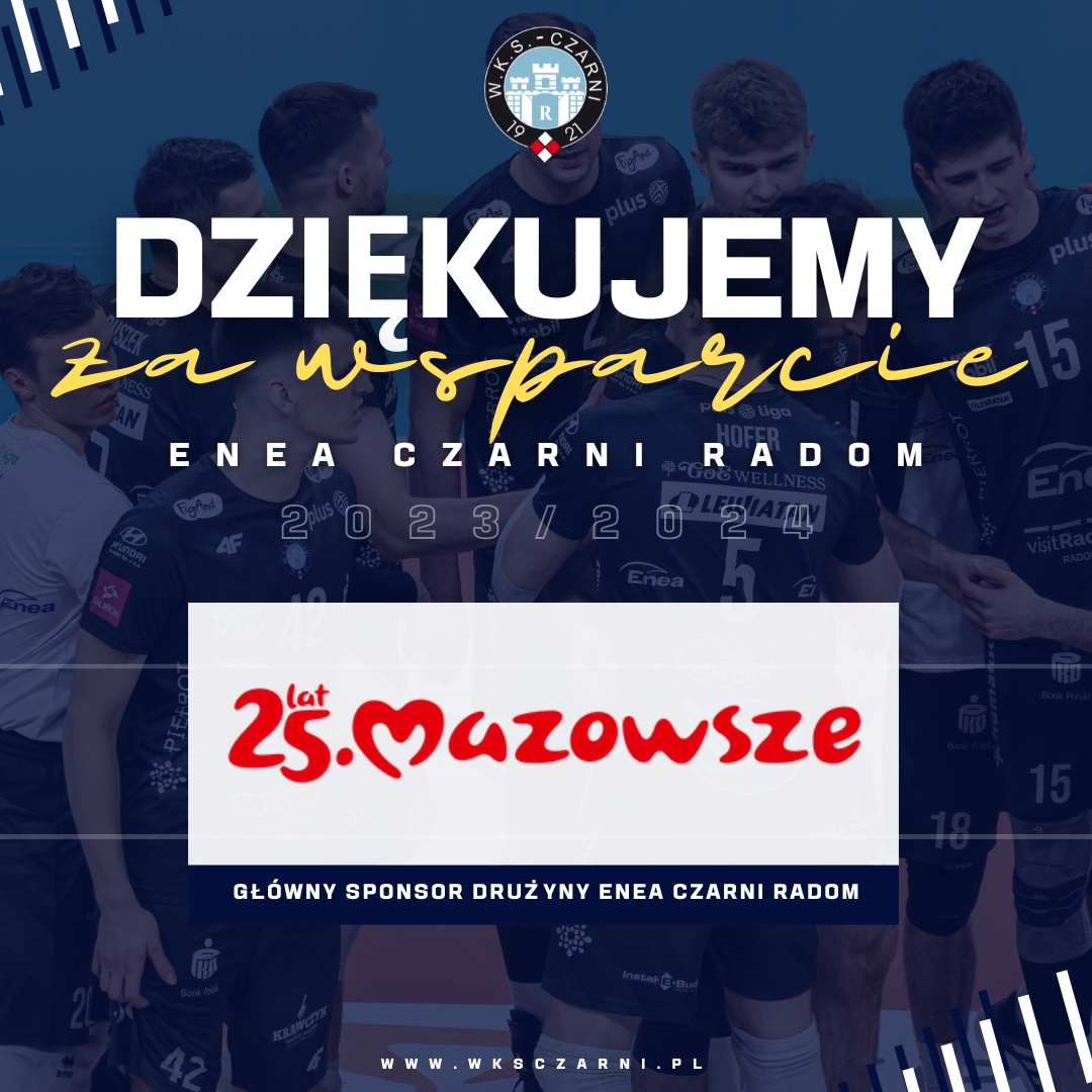 Za rozegrany sezon 2023/2024 w jednej drużynie, dziękujemy Samorządowi Województwa Mazowieckiego! Każdy mecz w hali Radomskiego Centrum Sportu w ramach rozgrywek PlusLigi mężczyzn, rozgrywany był pod partnerstwem Samorządu Województwa Mazowieckiego. Dziękujemy, że jesteście z nami!