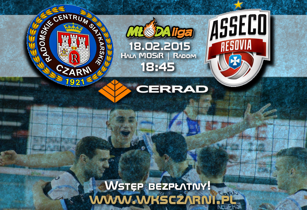 Już w najbliższą środę (18 lutego) dojdzie do bardzo ciekawego pojedynku w rozgrywkach MłodejLigi. Aktualna czwarta drużyna w tabeli RCS Cerrad Czarni Radom, podejmą w hali MOSiR-u, wicelidera - Asseco Resovię Rzeszów! Gorąco zapraszamy na zapowiadające się bardzo ciekawe spotkanie, w którym na pewno nie zabraknie sportowych emocji!